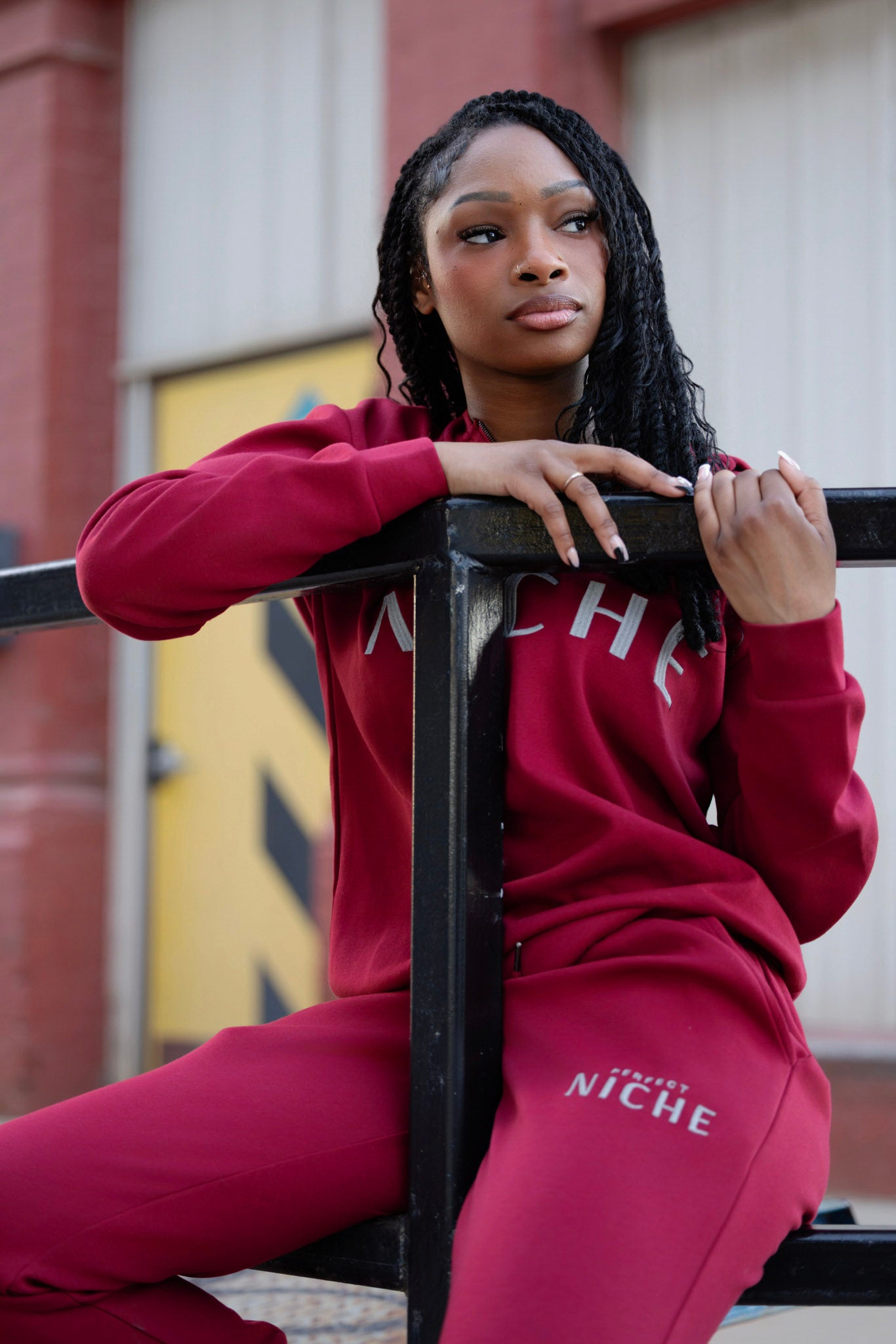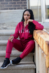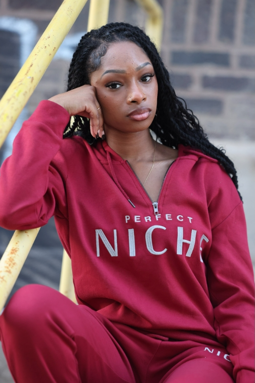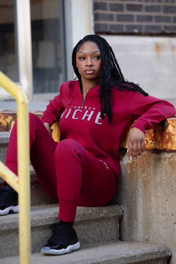 Perfect Niche Burgundy Quarter-Zip Jogging Suit